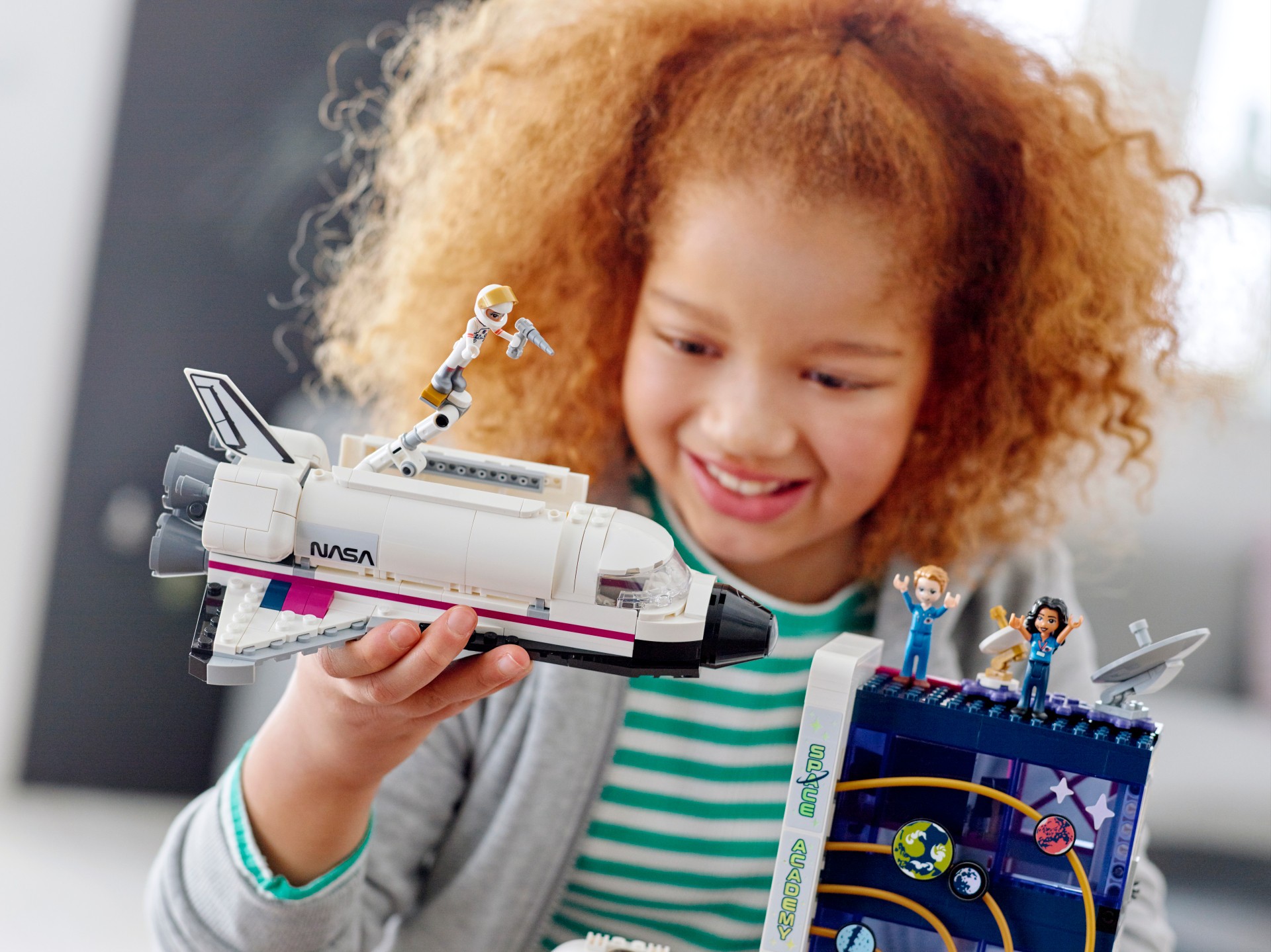 Kinderen die graag met ruimteschepen spelen, zullen dit LEGO spaceshuttlemodel geweldig vinden. De vrachtruimte van het ruimteschip heeft scharnierende deuren en de LEGO Friends minipoppetjes van astronauten verkennen de ruimte aan de Canadarm. Op aarde vinden ze een telescoop, een meerassig trainingsapparaat, een missiecontrolecentrum en een model van de zon, de aarde en de maan.
