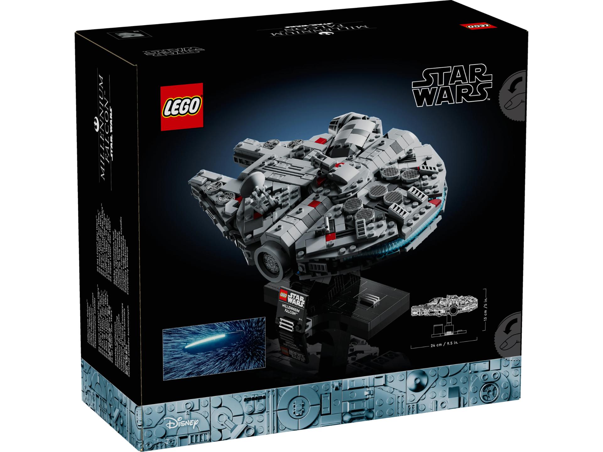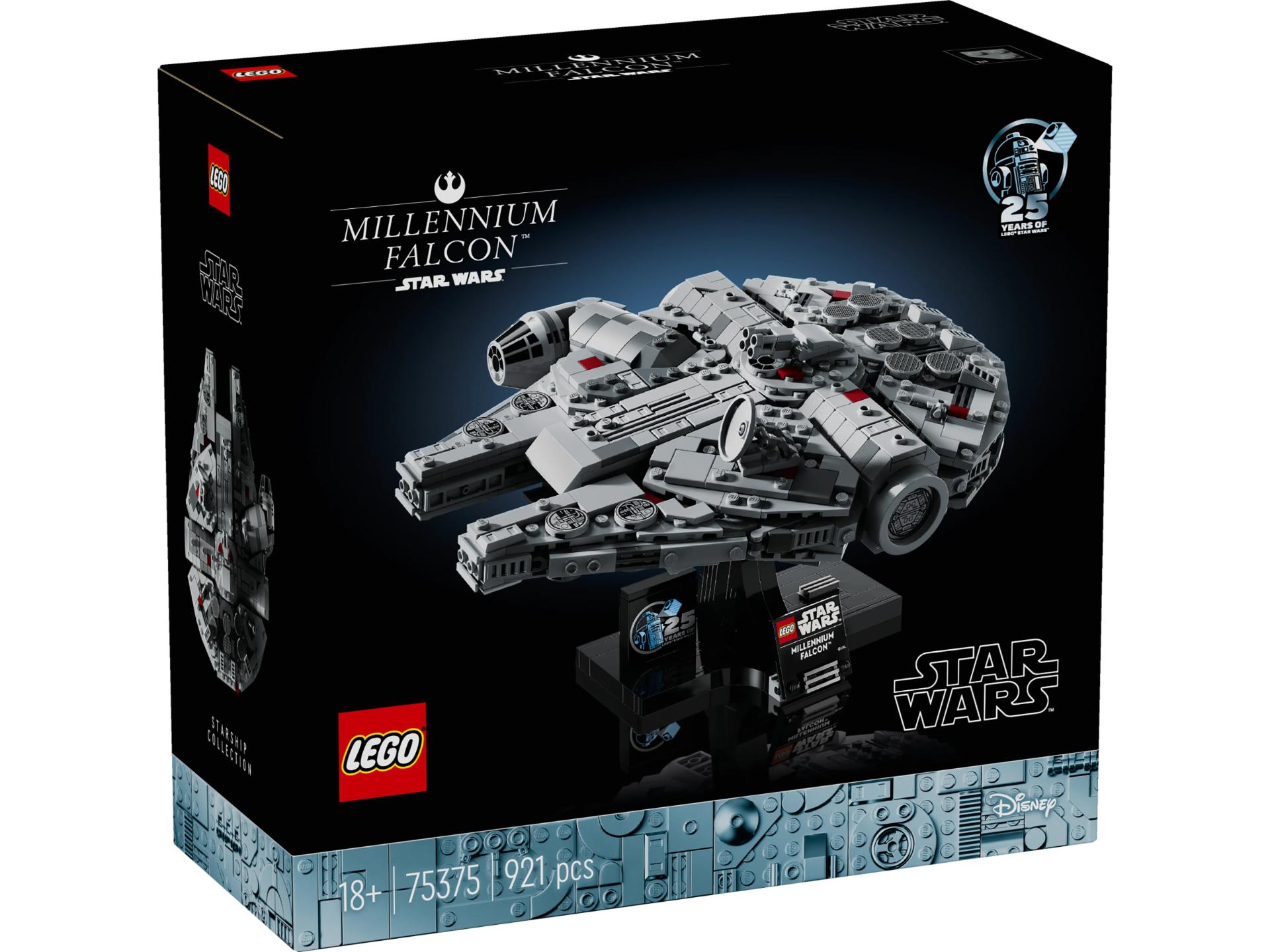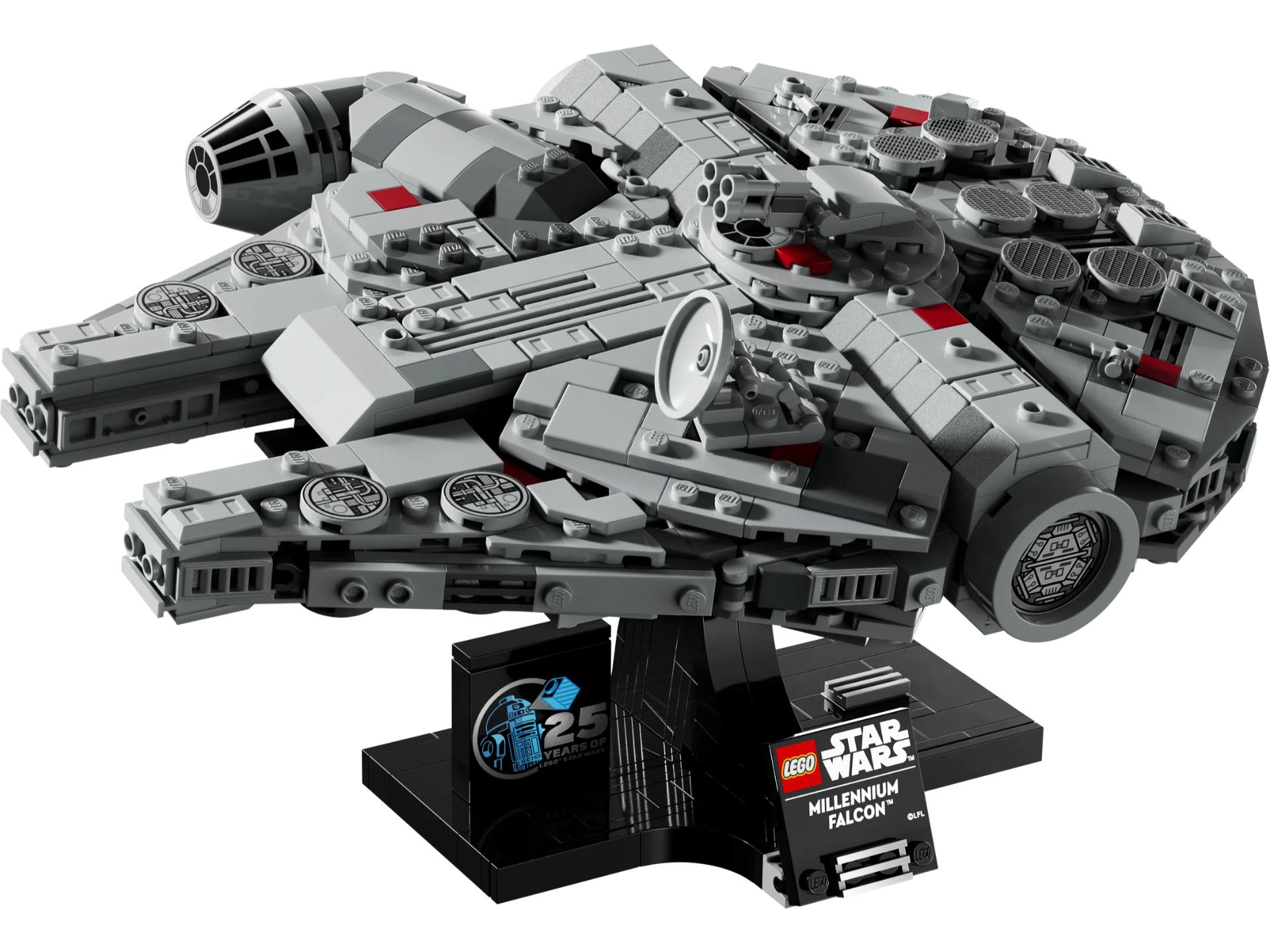 • Gemaakt om neer te zetten – de bouwbare standaard heeft een naamplaatje en een jubileumsteen ter ere van 25 jaar LEGO Star Wars en is ontworpen om de Millennium Falcon vanuit een dynamische hoek te laten zien