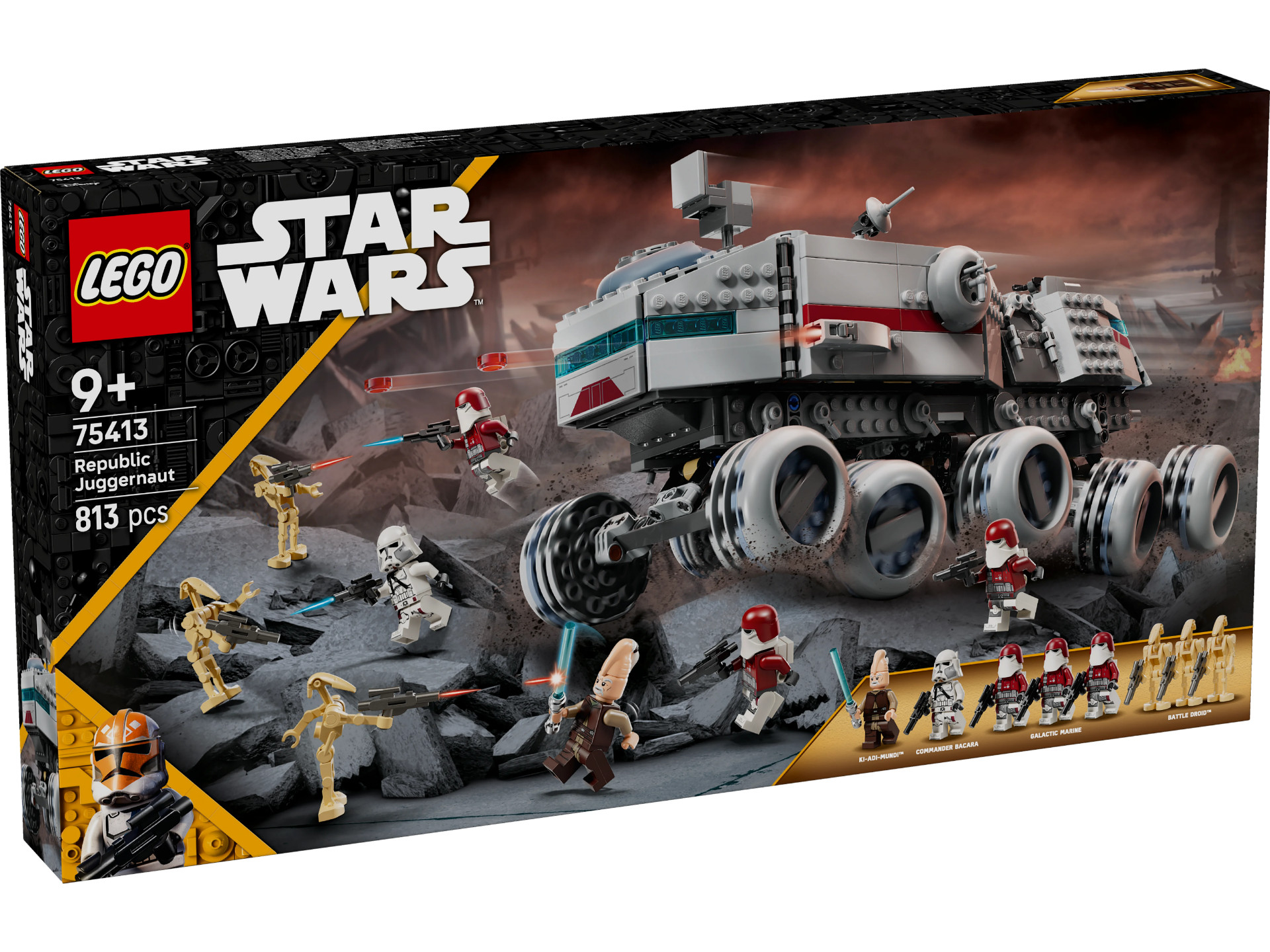 Kinderen leiden hun eigen spannende Star Wars: The Clone Wars missies met het bouwbare Republic Juggernaut transportvoertuig (75413). Deze 10-wieler is een cool LEGO Star Wars cadeau voor jongens, meisjes en fans vanaf 9 jaar en kan worden bestuurd door het model te kantelen terwijl je het beweegt. Bovendien krijg je gemakkelijk toegang tot het gedetailleerde interieur.