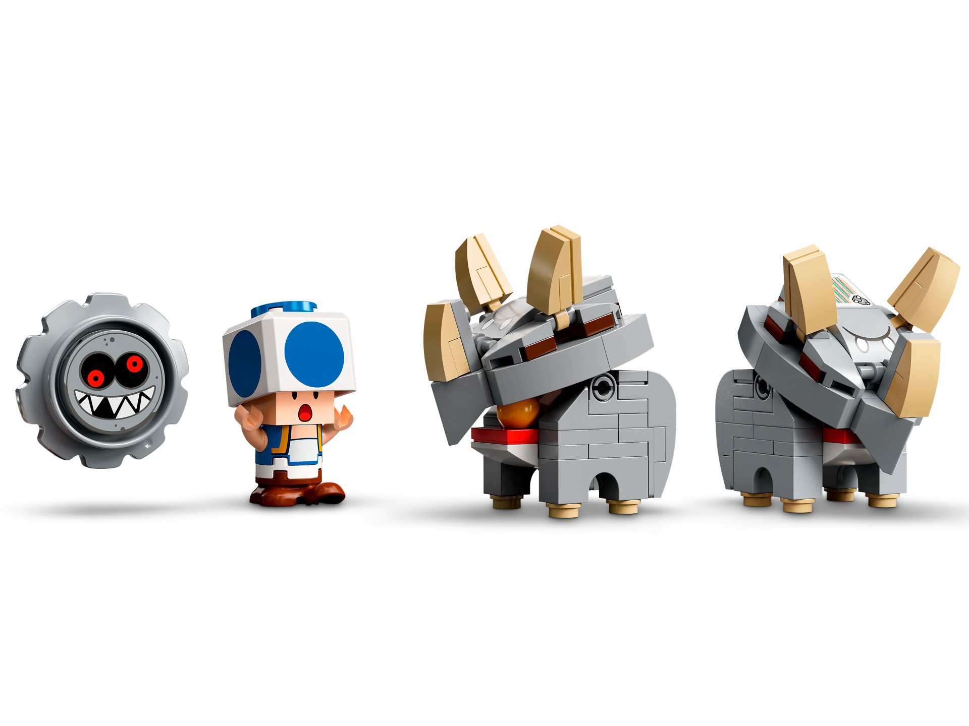 De set bevat bouwbare platforms die kinderen kunnen laten ronddraaien door LEGO® Mario™ en/of LEGO® Luigi™ (figuren niet inbegrepen) te draaien op de standaard. Gebruik de spijkerzuil om de 2 Reznor figuren van de ronddraaiende platforms te gooien en red de blauwe Toad. Inclusief een wiebelende Grrrol, een ?-blok en een speciale supersnelle buis voor snelheidsuitdagingen. (Let op: je hebt de startset 71360 of 71387 nodig.)