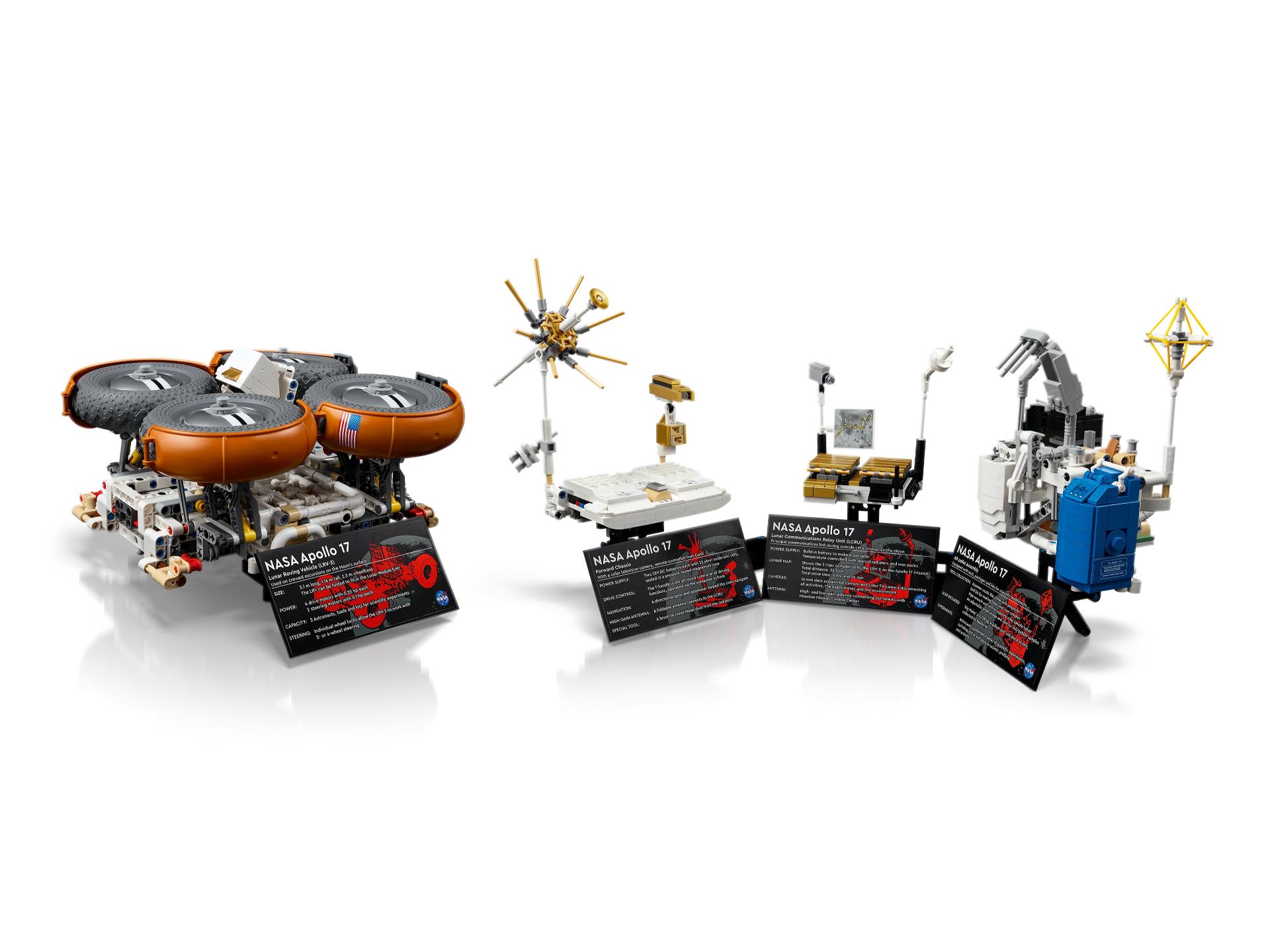• Een bouwmodel voor NASA fans – denk terug aan de Apollo 17-missie met een display met de maanwagen naast 3 gedetailleerde soorten apparatuur, elk met een eigen informatieplaatje