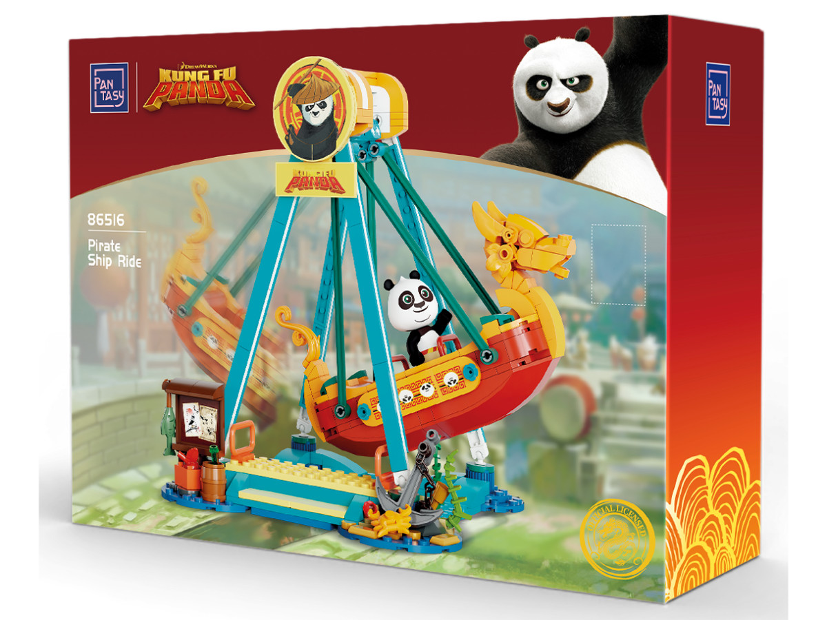 Stap aan boord van een vrolijke achtbaan vol actie met het Piratenschip Attractie uit de wereld van Kung Fu Panda! In deze unieke bouwset van PANTASY combineren zeepiratenpret en kungfuhumor zich tot een swingend spektakel voor jong en oud.